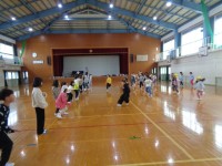 図画工作科で、家から持ってきた段ボールやプラスチック容器、洗濯ばさみなどに絵の具をつけて、色々な形を画用紙に写しました。