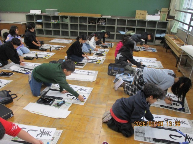 1月20日(木)4年生 書写 「新年書き初め集会」
