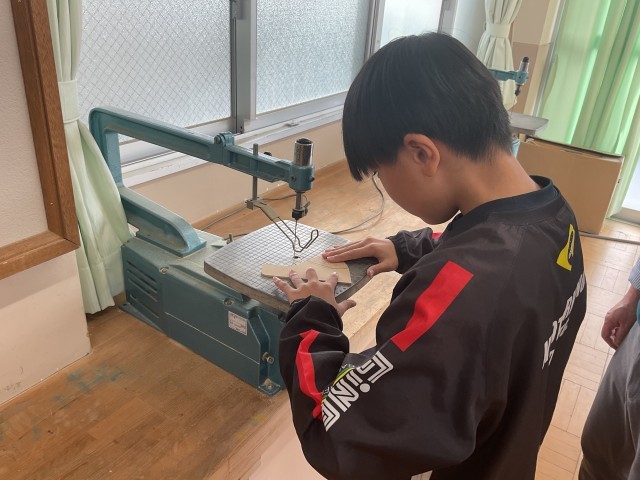 電動糸のこぎりを使い、パズルのピースに分けていきます。