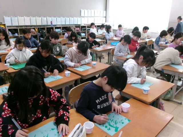 1月23日(金)2年生 書写「水書で書こう」