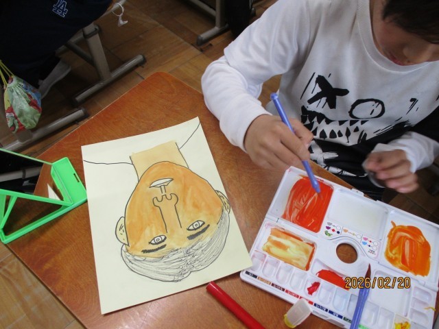 6年生を送る会に向けて、図画工作科の時間に自画像を制作しています。