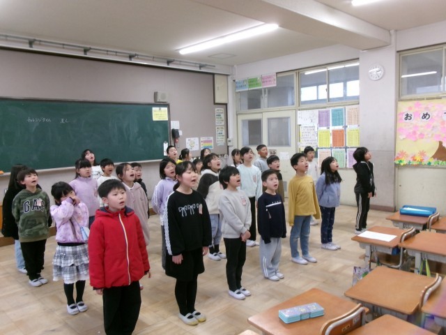 3月3日(火)2年生 音楽「6年生を送る会の練習」