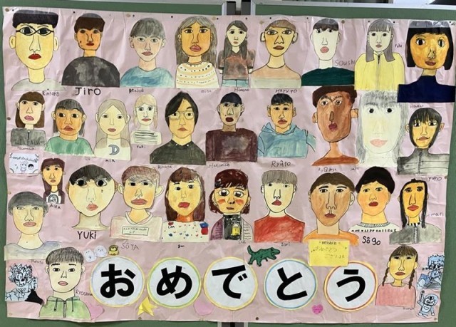 卒業していく6年生に、4年生からは自画像で気持ちを伝えます。