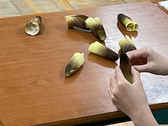 そこで、少しでもタケノコのことを知っておこう、ということで今日はタケノコを手にとり、肌触りや匂いを楽しみました。