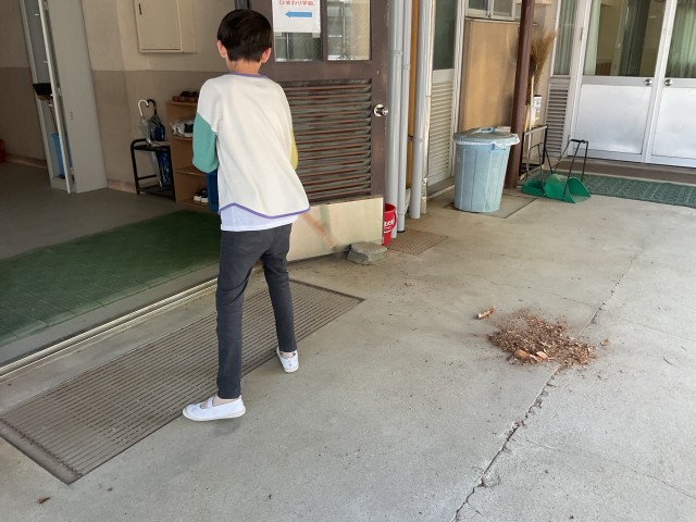 今日も南校舎の入り口のマットを外して葉っぱや砂のはき掃除をしました。