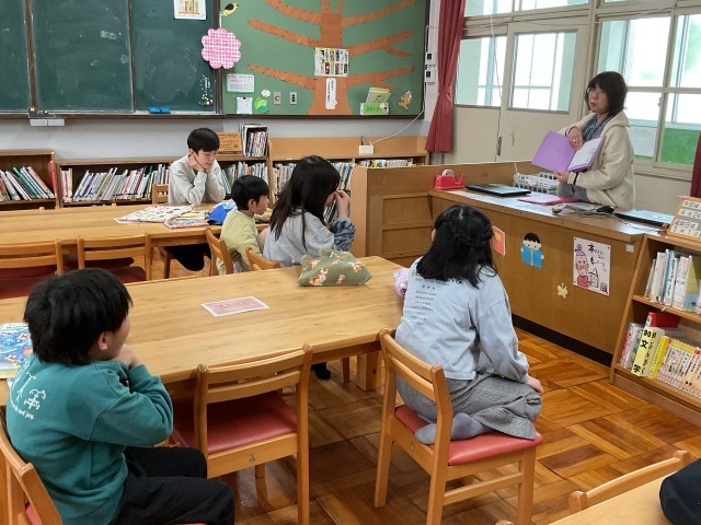 学校司書の北村先生が読んでくださった本が面白くて、子どもたちは大笑い。