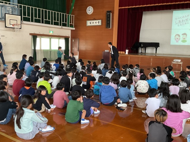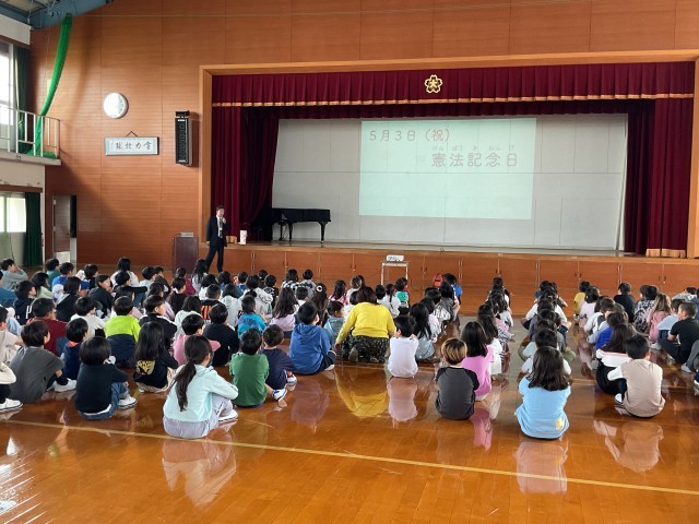 校長先生からの憲法についての話を聞き、みんなが幸せに生活することについて考えました。
