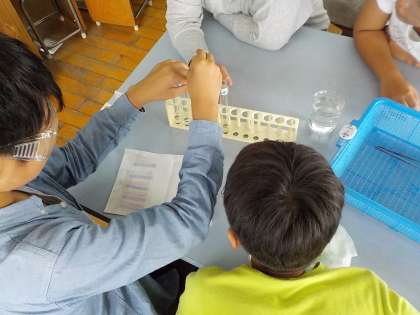 みんな落ち着いて,じっくりと実験や