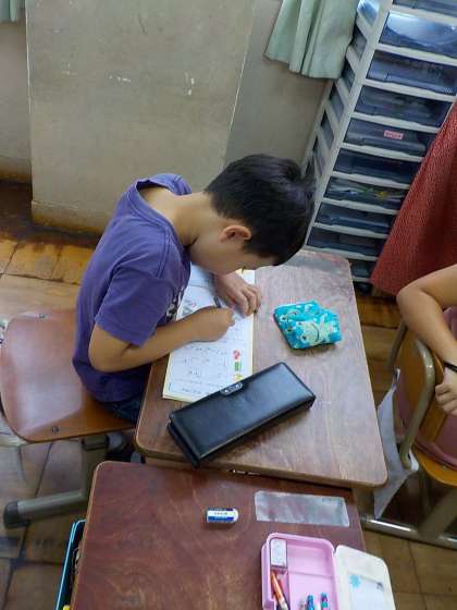 お直しがないといいな,ドキドキしながら,先生がまるをする様子を見ていました。