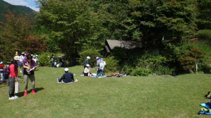 水車小屋の近くで、みんなでお弁当を食べました。日陰に入るととても気持ちが良いです。