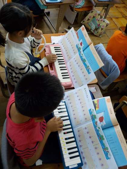 鍵盤ハーモニカの練習をしています。
