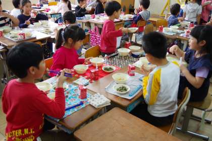新しい教室,新しいクラスにも慣れ,2年生は元気に活動しています。給食時間をのぞいてみると,テキパキと給食を配膳する姿が見られました。日直さんも大きな声であいさつしていました。