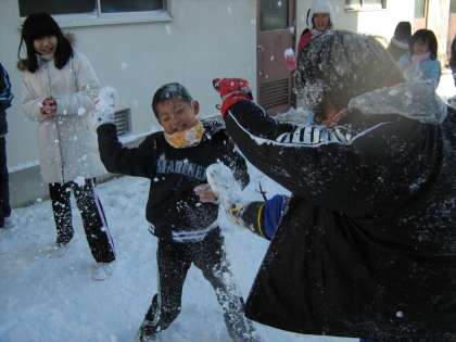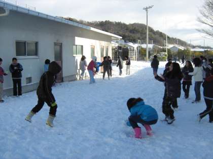 中間休みに,クラスみんなで雪遊びをしました。「雪めっちゃ積もってる〜」「ふかふかや」という声がとびかい,あまり体験できない楽しい中間休みとなりました。