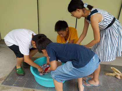 6年生は家庭科の学習で、夏をすずしく さわやかに過ごすための一つの工夫として選択の学習をしました。