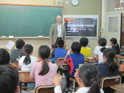 6年生は,国際日本文化研究センターの先生による出前授業をしていただいています。