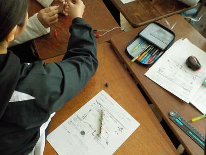 調べました。豆電球の光る様子を興味深く観察していました。