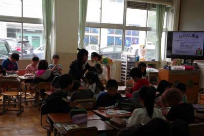 児童集会に続いて,2時間目のなかよし遊びでは,たてわりグループで集まりました。これから,たてわりグループで6月の校内オリエンテーリングなどいろいろな活動をする予定です。6年生が下の学年の子どもたちに,名札の作り方をがんばって説明したり,やさしくアドバイスをしたりする姿が印象的でした。