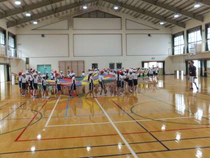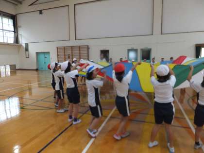今日の5時間目に,3年生とやまゆり学級合同で,運動会のバルーン演技の練習をしました。初めての合同練習という事もあり,少し緊張している様子も見られましたが,しっかりと演技をしていました。子どもたちは,3年生と一緒に演技をすることをとても楽しみにしています。