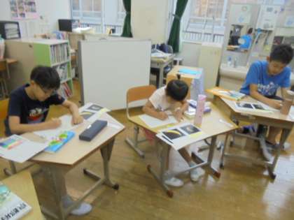 今回はプラネタリウムで月の満ち欠けを学習するという事もあり,自分のお気に入りの付のイラストを描いたり,実験室学習で作成するものを見たりしました。とても楽しみにしているようです。
