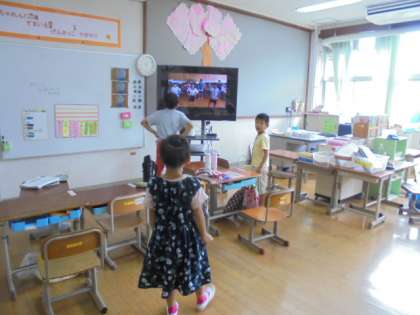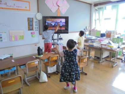 毎日,給食後の時間に,運動会での全校体操の練習をしています。最初は,「むずかしいなぁ」と言っていた子どもたちも,何度も繰り返しビデオで確認するうちに,身体を動かすようになってきました。みんなで楽しみながら覚えていきたいと思います。