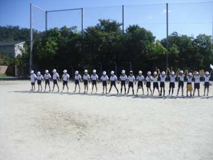 3年生は国語で「ちいちゃんのかげおくり」の学習に取り組んでいます。かげおくりのやり方を覚えた子どもたちは,晴れ渡る秋空の下,手をつなぎながらいくつものかげぼうしを青い空に浮かべていました。