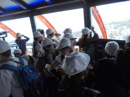 社会見学の最後に京都タワーに行きました。バスの中からちらっと見えたとき,歓声が上がっていましたが,実際にタワーの真下に来たときの子どもたちは,その大きさに驚いていました。