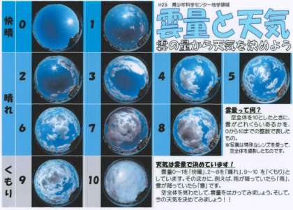 今日は,「曇り」ですね。「晴れ」や「曇り」の決め方についての写真を掲載しましたので,課題をする時に使って観察してみてください。観察の時に,雲の種類も分かったらすばらしいです。