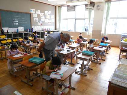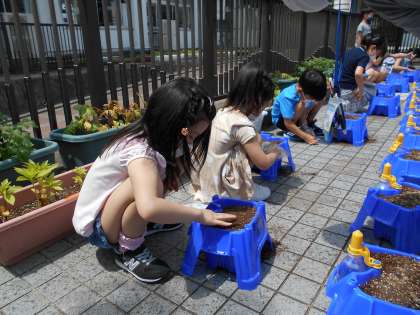まだまだランドセルが大きくて重くて教室にたどり着いた時にはもう一仕事終えたかのような感じですが,国語や算数のお勉強。生活科ではあさがおの種まきをしました。