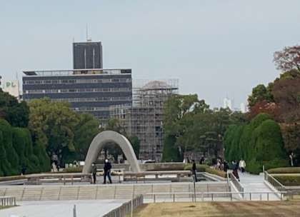 広島での平和学習が終わりました。平和公園を後にし,今日宿泊する岡山のホテルに向かいます。