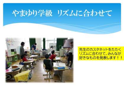 やまゆり学級の学習の様子です。リズムに合わせながら自分の好きなものを伝え合いました。