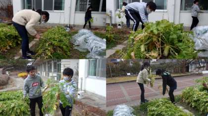 いよいよ収穫のときがきました。今年はなかなか成就感を味わう体験活動を思うようにすすめられなかった一年でしたが,作物はみんなの気持ちにしっかりと応えて大きく生長していました。