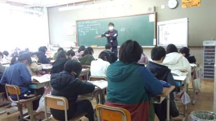 社会科で戦争中の人々のくらしを調べまとめる6年生。