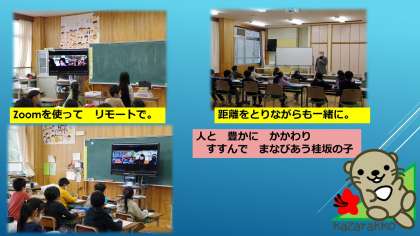 3時間目に,3年生が,地域の方にインタビューをしました。自治連合会,少年補導,消防分団,古墳の森,PTA本部の方々にご来校いただき,Zoomを使うなど感染症対策をしながら,お話を聞きました。コロナ禍の中でも学習の形を工夫することで,いろいろな人とかかわり,思いを聞くなどして,学習を深めていくことができました。