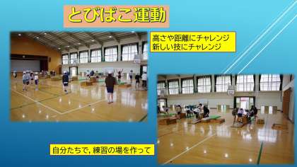 自分たちで練習の場を作り,高さや距離,新しい技にどんどんチャレンジいています。お互いにアドバイスをしあいながら,一緒にスキルアップを図っています。