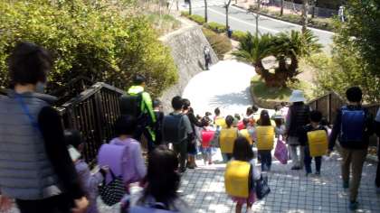 色別のグループのに集まっての下校ですが,クラスを越えて,それぞれの色に並びかえるのも最初は難しいものです。が,1年生のみんな,しっかりお話を聞いてスムーズに並ぶことができました。
