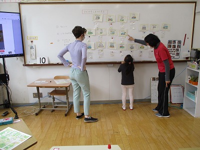今日の3時間目にカレン先生が昨日に続いてきてくださり、英語の授業を一緒に楽しく取り組みました。
