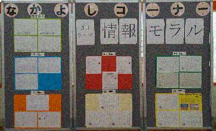 学んだことを全校で共有できるよう,なかよし掲示板に全学級のワークシートを掲示しています。