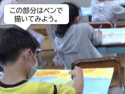 国語科「アップとルーズで伝える」の学習を生かしながら,アップかルーズのどちらの絵にするのかも考えました。