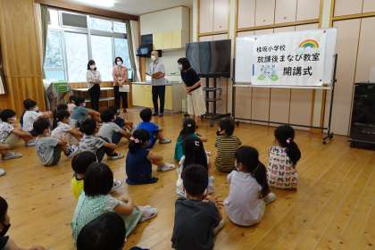 6月22日(火)に,放課後まなび教室の開講式をしました。式に臨む子どもたちの顔はやる気に満ちていました。放課後まなび教室は学校の中での取組ですが,違うクラスや学年の友達とのつながりができます。宿題など学習をしたり,けん玉や折り紙で遊んだりと,放課後の有意義な時間を過ごせればと思います。今年度は64人が登録しています。保護者の皆様はお迎えの時に,ぜひ子どもたちの様子をご覧ください。