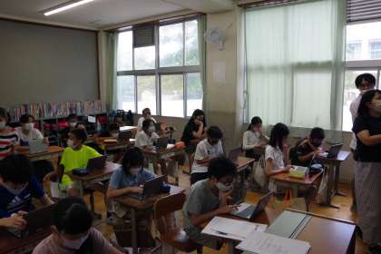 高学年は今週,学年ごとに持ち帰る予定をしています。6年生では,持ち帰りの際のきまりの確認をしたり,Teamsを使ってのビデオ通話や会話機能,課題の提出の仕方について確かめたりしています。いろいろな使い方に慣れ親しんでいってほしいと思います。