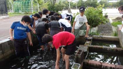 網や長靴を持ってきて,生け捕り本気度マックスの子や,外で眺めつつ,生き物の生態について語りだす子も。とてもたのしい休み時間が一週間ほど続きました。