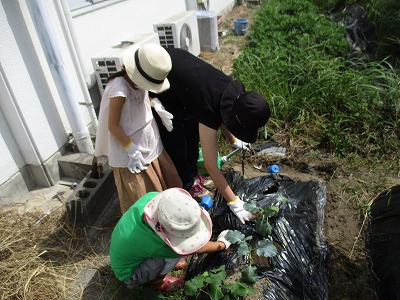 2時間目に教室の裏にある畑に,冬の野菜を植えました。今日はブロッコリーの苗を一人一つ植えました。夏の野菜が終わり,次は冬に収穫できるようみんなで協力して育てていきます。サツマイモやナス,ピーマンはまだまだできていますので,これからも引き続きみんなで世話をしていこうと思います。