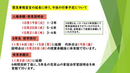 今後の行事予定変更についてお知らせいたします。