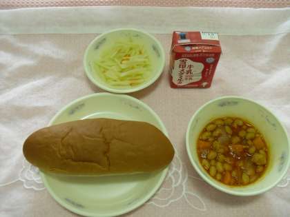 左)8月26日・・・大豆と鶏肉のトマト煮(給食開始!)