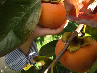 柿農園で質問をして,たくさんのことを知り,やまゆりで育てている畑との違いやこれまでに学習したことと関連付けて考えることができました。大枝の柿の特徴として「食感がシャキッとしていて,大きくて甘い」と聞いて,自分たちの手のひらと比べて「手のひらより大きい」と大きさを理解することもできました。