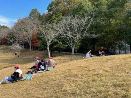 秋空のもと,みんなでお弁当を食べました。日差しがほっこり暖かく感じます。