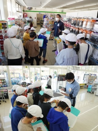 デイリーカナートイズミヤ・ファミリーマート・ドラッグユタカ・国際日本文化研究センターの4ヵ所へ,それぞれの担当グループがお邪魔しました。