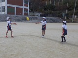 少ない人数でのミニゲームを行いながら,ルールや動きを少しずつ身に付けています。