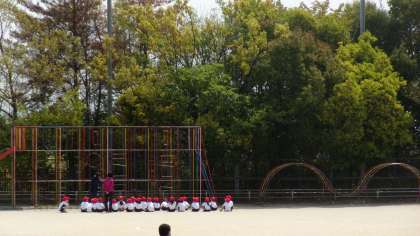 1年生にとって,広い運動場にとても魅力的な遊具がたくさんあります。