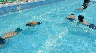 1年生は6月中旬に水慣れから、プールでの学習を始めています。サインの確認、水に顔をつけること、潜り方やいろいろな浮き方など、一つひとつゆっくりと学びを進めています。楽しく水に触れながら身に着けていけるようにしたいと思います。